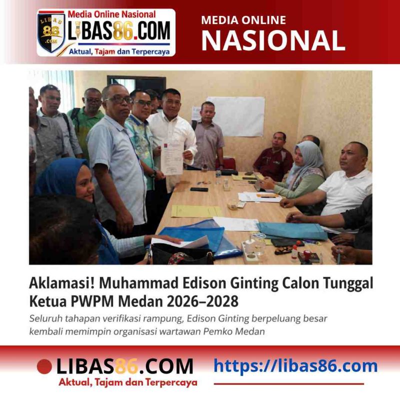 MEDAN, LIBAS86.COM – Pemilihan Ketua Persatuan Wartawan Pemko Medan (PWPM) periode 2026–2028 dipastikan hanya diikuti satu kandidat. Muhammad Edison Ginting resmi ditetapkan sebagai calon tunggal setelah seluruh tahapan pendaftaran dan verifikasi administrasi ditutup oleh panitia.