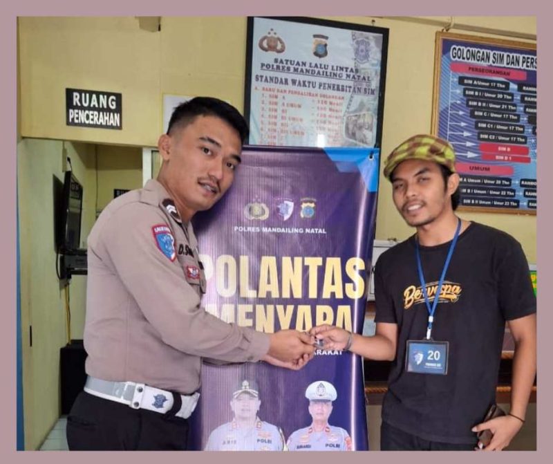 MADINA, LIBAS86.COM – Satuan Lalu Lintas (Satlantas) Polres Mandailing Natal (Madina) kembali melakukan inovasi positif dengan memberikan reward berupa suvenir gantungan kunci dan pulpen kepada para pengendara yang tertib berlalu lintas.