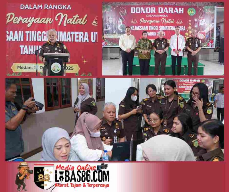 MEDAN, LIBAS86.COM – Kejaksaan Tinggi Sumatera Utara menggelar kegiatan sosial donor darah yang berlangsung di Adhyaksa Hall lantai I Jalan Jenderal Besar AH Nasution, Medan. Dalam rangka menyambut hari Natal tahun 2025,