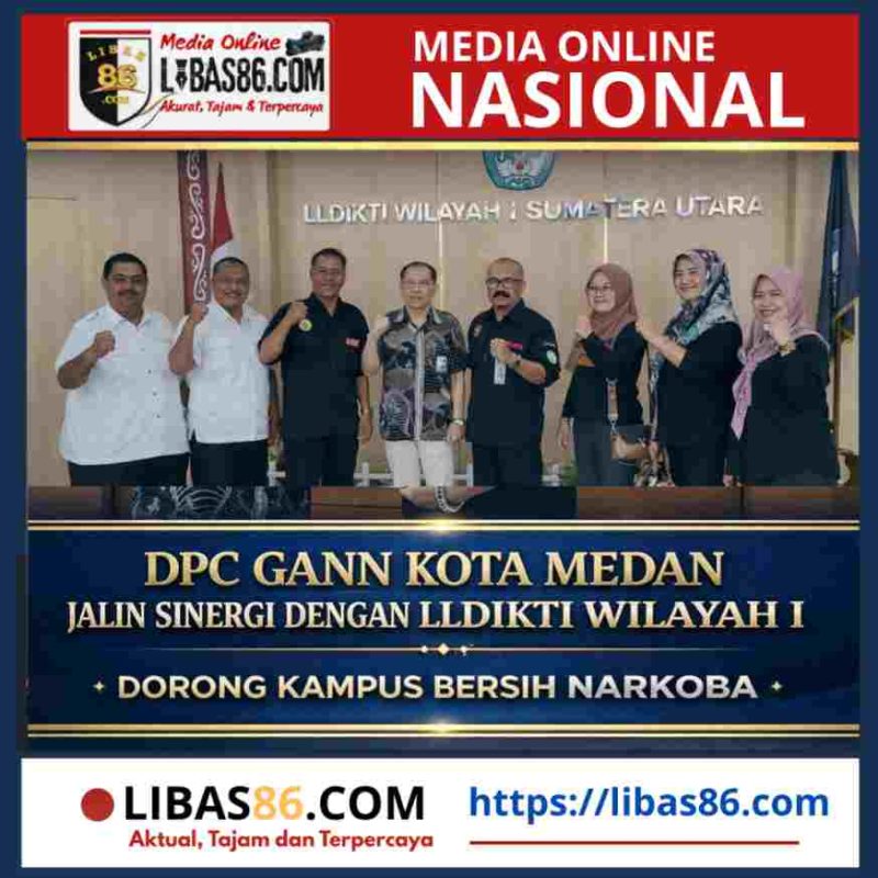 MEDAN, LIBAS86.COM – DPC GANN Kota Medan memperkuat langkah pencegahan penyalahgunaan narkotika dengan menjalin sinergi bersama LLDIKTI Wilayah I dalam kunjungan silaturahmi di Medan, Selasa (14/4). Pertemuan ini menjadi sinyal kuat bahwa perang melawan narkoba di lingkungan pendidikan tinggi membutuhkan kolaborasi nyata lintas sektor.