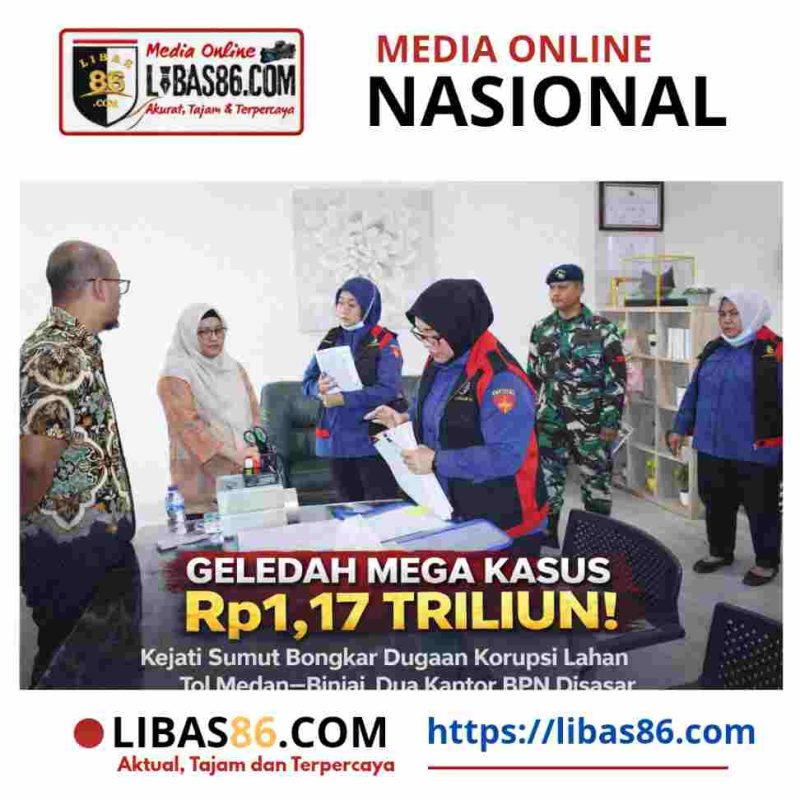 MEDAN, LIBAS86.COM — Aroma korupsi jumbo kembali mencuat. Tim Penyidik Pidana Khusus Kejaksaan Tinggi Sumatera Utara (Kejati Sumut) menggeledah dua kantor strategis terkait dugaan tindak pidana korupsi pengadaan tanah proyek jalan tol Medan–Binjai Seksi I, II, dan III dengan nilai fantastis mencapai Rp1,17 triliun.