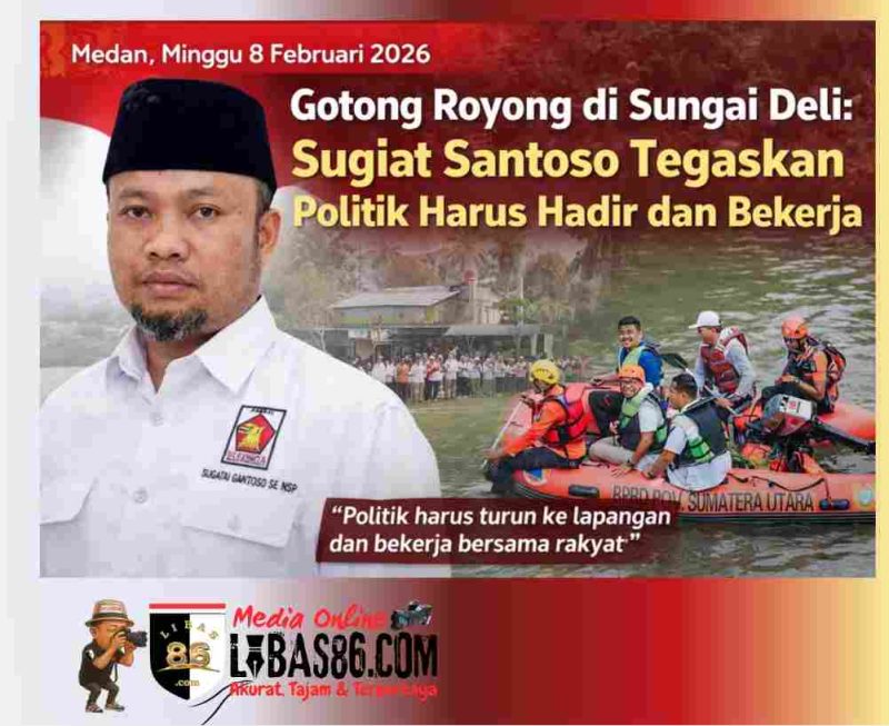 MEDAN, LIBAS86.COM – Sungai Deli kembali mengingatkan bahwa persoalan lingkungan tidak bisa diselesaikan dengan baliho, slogan, atau rapat seremonial. Di aliran sungai yang selama ini memikul beban banjir dan pencemaran, Sugiat Santoso, Sekretaris DPD Partai Gerindra Sumatera Utara, memimpin apel gotong royong bersih sungai, menegaskan satu pesan tegas: politik harus turun ke lapangan dan bekerja bersama rakyat.