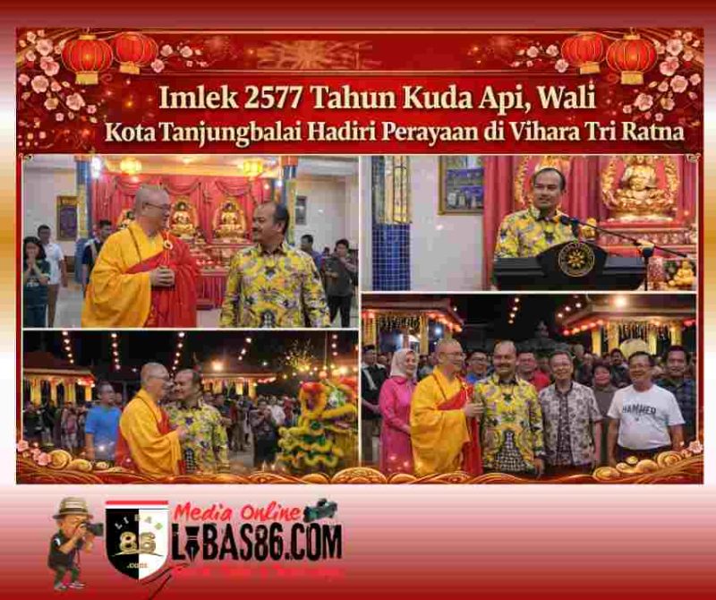 TANJUNGBALAI, LIBAS86.COM – Perayaan Tahun Baru Imlek 2026 yang bertepatan dengan Tahun Kuda Api (2577 Kongzili) menjadi momentum penuh semangat, keberanian, dan optimisme baru bagi masyarakat Tionghoa di Kota Tanjungbalai. Nuansa kebersamaan itu terlihat saat Wali Kota Tanjungbalai Mahyaruddin Salim menghadiri langsung perayaan di Vihara Tri Ratna, Senin (16/2/2026) malam. 🏮🔥