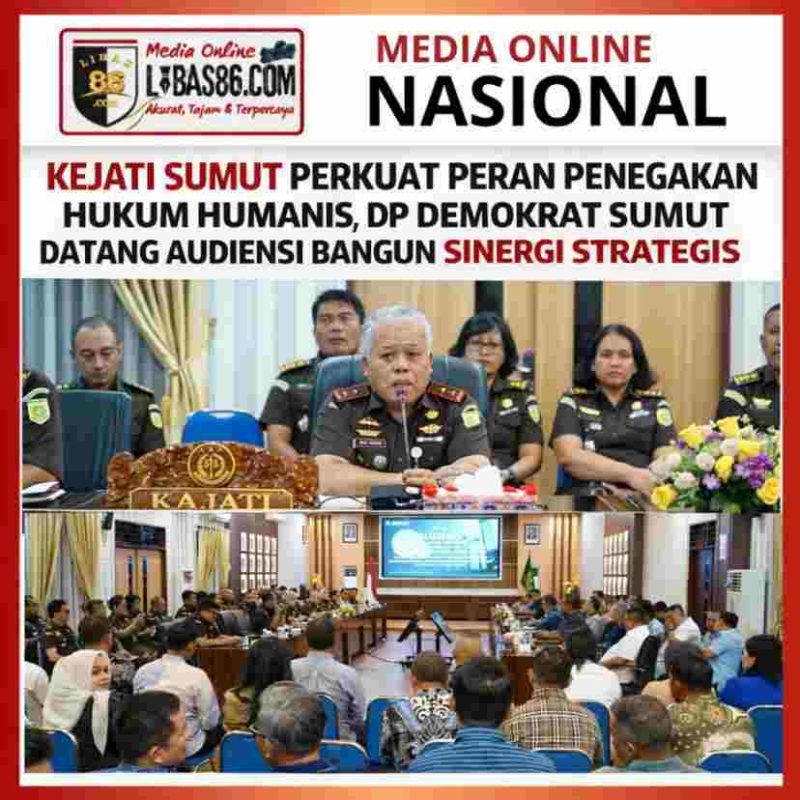 MEDAN, LIBAS86.COM — Kejaksaan Tinggi Sumatera Utara (Kejati Sumut) kembali menegaskan perannya sebagai institusi penegak hukum yang profesional, transparan, dan humanis dalam menerima audiensi Dewan Pimpinan Daerah (DPD) Partai Demokrat Sumatera Utara. Pertemuan yang berlangsung di Aula Cipta Kerta, Kantor Kejati Sumut, Jalan Jenderal AH Nasution, Medan, menjadi ruang strategis memperkuat sinergi antar lembaga demi menjaga stabilitas hukum di daerah.