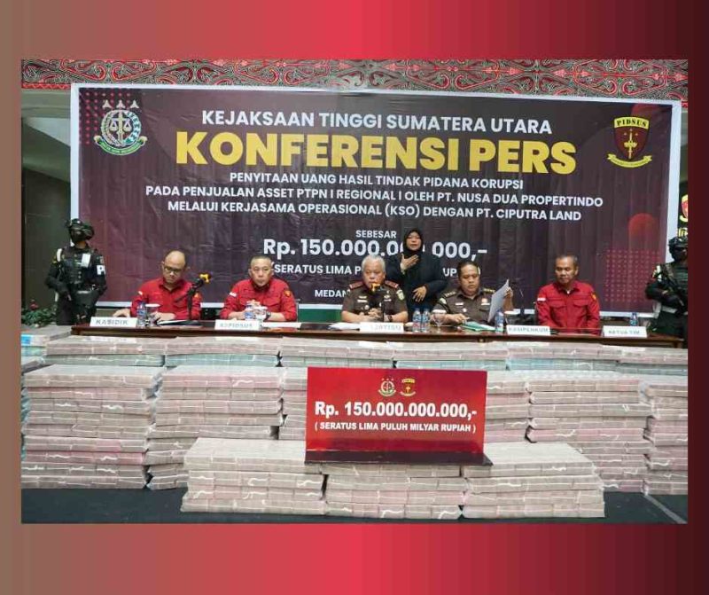 MEDAN, LIBAS86.COM – Sebagai upaya penyelamatan dan pemulihan keuangan negara dari penanganan tindak pidana korupsi Perkara Penjualan Aset PTPN I Regional I oleh PT Nusa Dua Propertindo melalui Kerjasama Operasional (KSO) dengan PT.Ciputra Land, Tim Penyidik Bidang Pidana Khusus Kejaksaan Tinggi Sumatera Utara saat ini telah menerima pengembalian kerugian keuangan negara dari PT Deli Megapolitan Kawasan Residensial (DMKR) dengan nilai total Rp.150.000.000.000,- (seratus limapuluh miliar rupiah) untuk selanjutnya dilakukan penyitaan oleh penyidik.