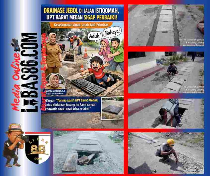 MEDAN, LIBAS86.COM – Kekhawatiran warga Jalan Istiqomah Lingkungan XI, Kelurahan Helvetia Timur, Kecamatan Medan Helvetia, akhirnya terjawab. Laporan masyarakat terkait penutup drainase yang jebol di kawasan tersebut langsung ditindaklanjuti UPT Barat Dinas Sumber Daya Air, Bina Marga dan Bina Konstruksi (SDABMBK) Kota Medan dengan turun langsung ke lokasi melakukan perbaikan.