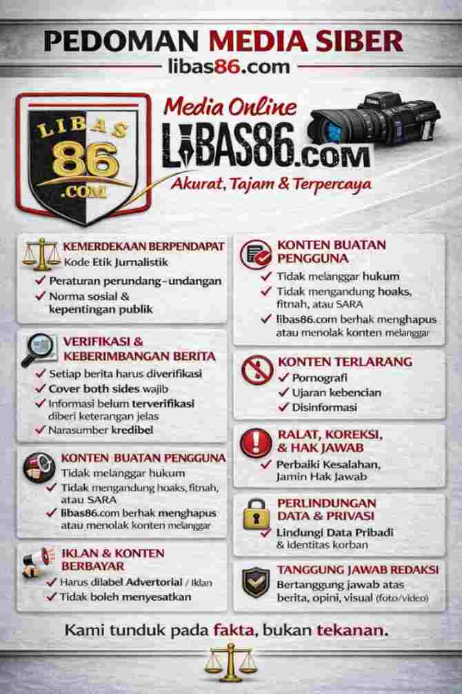 Redaksi libas86.com bertanggung jawab penuh atas seluruh konten yang dipublikasikan, termasuk: