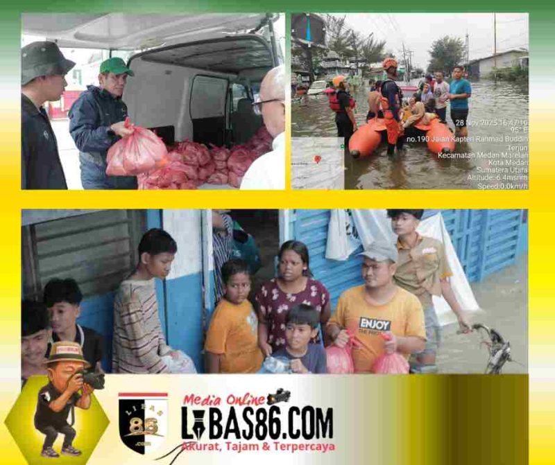 MEDAN, LIBAS86.COM – Menindaklanjuti arahan Wali Kota Medan, Rico Tri Putra Bayu Waas, untuk memastikan kebutuhan dasar warga terdampak banjir terpenuhi, jajaran kecamatan bersama sejumlah pihak menyalurkan bantuan makanan kepada para pengungsi di Kecamatan Medan Selayang dan Medan Barat, Jumat (27/11/2025).