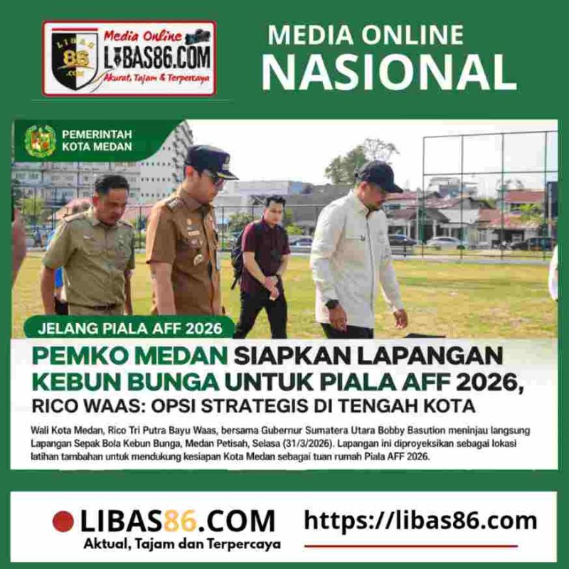 MEDAN, LIBAS86.COM -:Menjelang gelaran Piala AFF 2026, Pemerintah Kota (Pemko) Medan mempercepat persiapan infrastruktur olahraga dengan menyiapkan Lapangan Sepak Bola Kebun Bunga sebagai lokasi latihan tambahan. Langkah ini dilakukan guna mendukung kesiapan Kota Medan sebagai salah satu tuan rumah ajang sepak bola internasional tersebut.