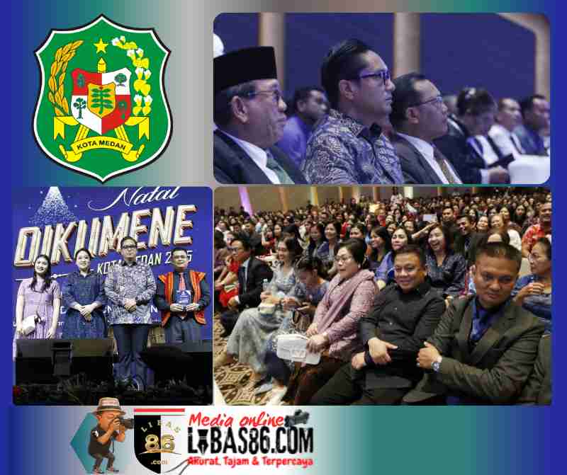 Medan, LIBAS86.COM- Perayaan Natal Oikumene Kota Medan tahun 2025 berlangsung penuh khidmat dan meriah di Adora Convention, jalan Harmonika Baru, Padang Bulan Selayang II, Kecamatan Medan Selayang, Rabu malam (10/12/2025). Ribuan umat Kristiani dari seluruh penjuru Kota Medan sejak petang telah memadati gedung pertemuan tersebut.