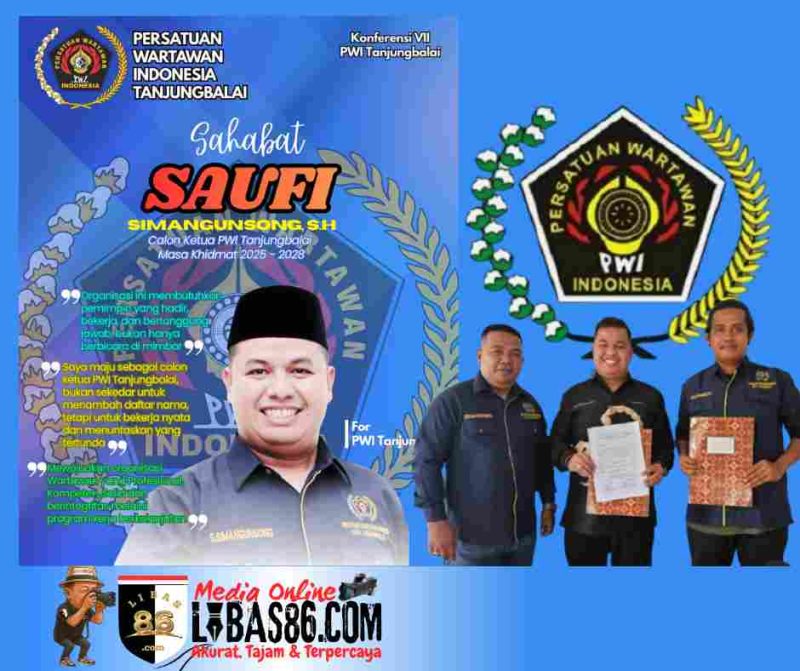 TANJUNGBALAI, LIBAS86.COM – Saufi Simangunsong, S.H., resmi menyatakan maju sebagai calon Ketua Persatuan Wartawan Indonesia (PWI) Kota Tanjungbalai periode 2025–2028. Pernyataan tersebut disampaikan usai Saufi mengembalikan berkas pendaftaran pencalonannya kepada panitia, Rabu (24/12/2025).