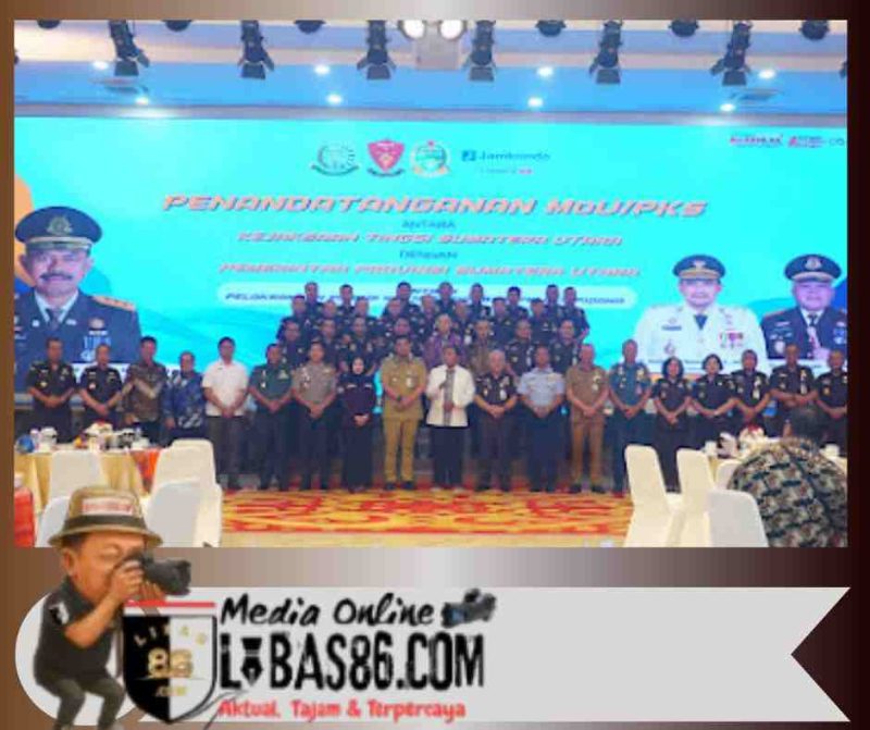 MEDAN, LIBAS86.COM – Pelaksana Tugas (Plt) Kepala Kejaksaan Negeri Mandailing Natal (Kajari Madina), Yos A. Tarigan, S.H., M.H., M.I.Kom, didampingi Kepala Seksi Tindak Pidana Umum (Kasi Pidum) Gilbert Abiet Nego Partogi Tua Sitindaon, S.H., M.H., menghadiri kegiatan penandatanganan Memorandum of Understanding (MoU) dan Perjanjian Kerja Sama (PKS) antara Kejaksaan Tinggi Sumatera Utara (Kejati Sumut) dengan Pemerintah Provinsi Sumatera Utara, serta Kejaksaan Negeri se-Sumut dengan pemerintah kabupaten/kota se-Sumatera Utara.