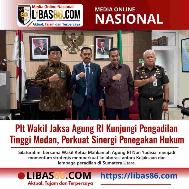 MEDAN, LIBAS86.COM – Pelaksana Tugas (Plt) Wakil Jaksa Agung Republik Indonesia, Prof. Dr. Asep N. Mulyana, S.H., M.Hum, melakukan kunjungan kerja ke Pengadilan Tinggi Medan, Kamis (23/4/2026). Kunjungan ini menjadi bagian dari upaya memperkuat sinergi antar lembaga penegak hukum di wilayah Sumatera Utara.