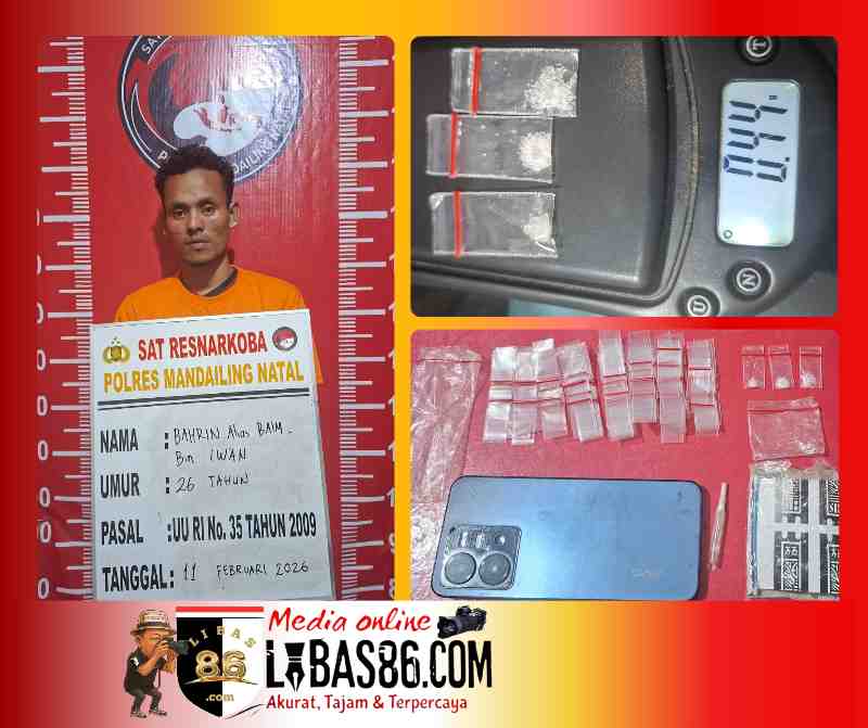 Mandailing Natal, LIBAS86.COM – Kepolisian Resor Mandailing Natal (Polres Madina) melalui Satuan Reserse Narkoba kembali menunjukkan komitmennya dalam memberantas peredaran narkotika. Seorang pria yang diduga sebagai pengedar sabu berhasil diamankan dalam operasi di Kecamatan Batang Natal, Rabu malam (11/2/2026).
