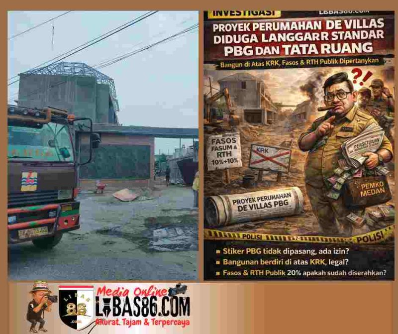 MEDAN, LIBAS86.COM – Proyek Pembangunan Perumahan Karya De Villas yang berlokasi di Jalan Istiqomah, Kelurahan Helvetia Timur, Kecamatan Medan Helvetia, menjadi sorotan setelah tidak ditemukan pemasangan stiker Persetujuan Bangunan Gedung (PBG) di lokasi proyek, padahal hal tersebut wajib secara hukum.
