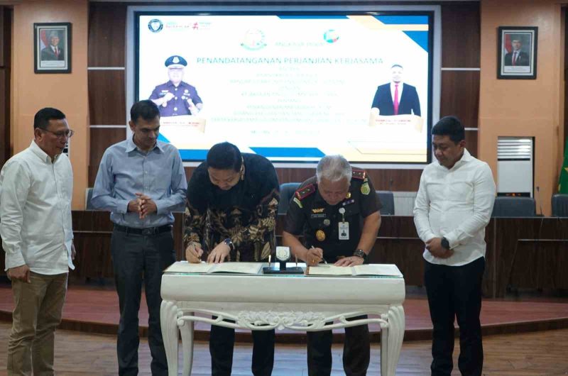 Medan – PT. Angkasa Pura Aviasi (PT APA) Bandar Udara Internasional Kualanamu teken penandatanganan naskah perjanjian kerjasama (MoU) dengan Kejaksaan Tinggi Sumatera Utara (Kejati Sumut) di Aula Cipta Kerta Lantai III Kejati Sumut, Rabu (15/10/2025).