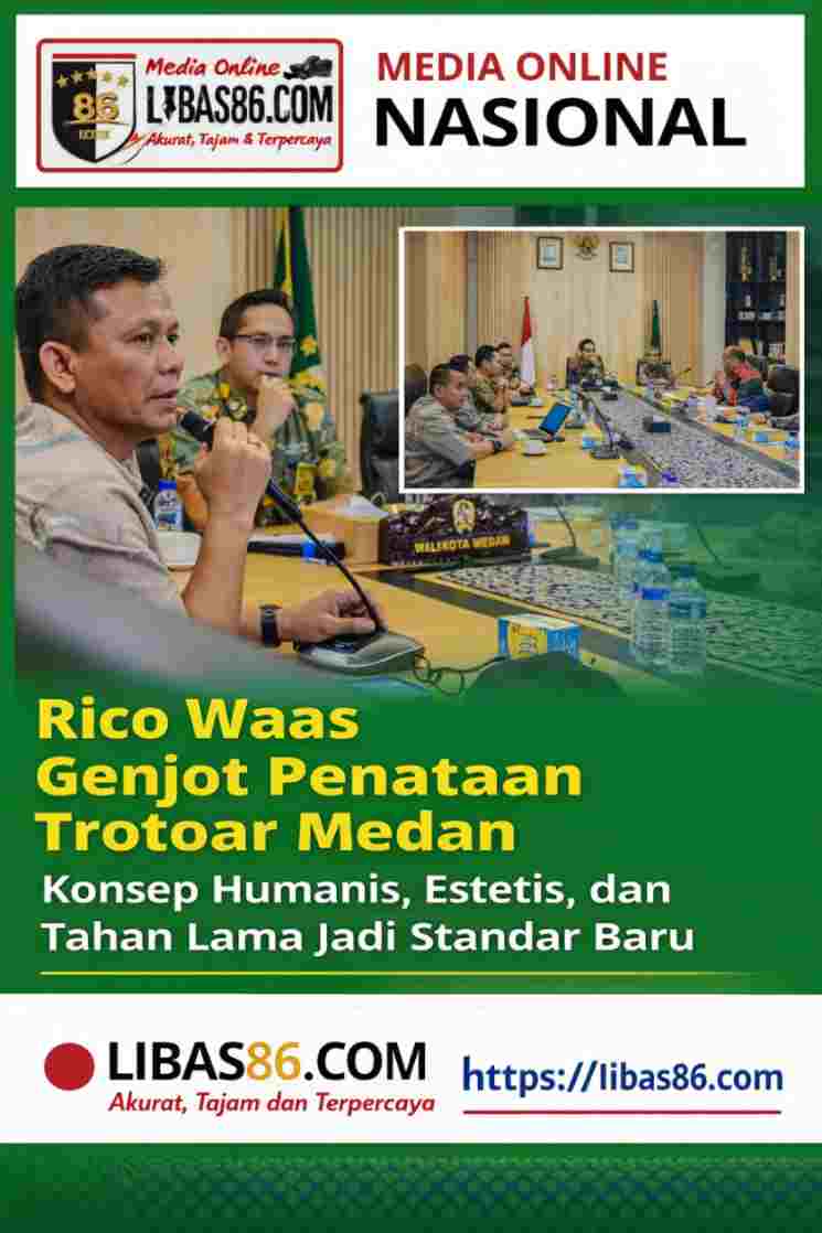 MEDAN, LIBAS86.COM – Wali Kota Medan Rico Tri Putra Bayu Waas menegaskan arah baru pembangunan infrastruktur kota dengan menitikberatkan pada penataan trotoar yang terencana matang, humanis, serta memiliki nilai estetika tinggi. Hal ini disampaikan saat memimpin rapat strategis penataan trotoar di sejumlah ruas jalan utama Kota Medan, Kamis (2/4/2026).