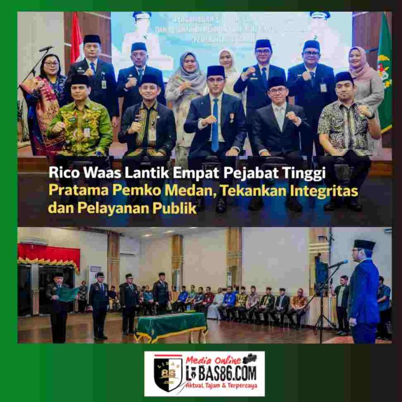 MEDAN, LIBAS86.COM – Wali Kota Medan Rico Tri Putra Bayu Waas melantik dan mengambil sumpah jabatan empat Pejabat Pimpinan Tinggi Pratama di lingkungan Pemerintah Kota (Pemko) Medan, Jumat (13/3/2026). Pelantikan berlangsung di Ruang Rapat III Kantor Wali Kota Medan dan menjadi bagian dari langkah percepatan pembangunan serta penguatan kinerja organisasi perangkat daerah.