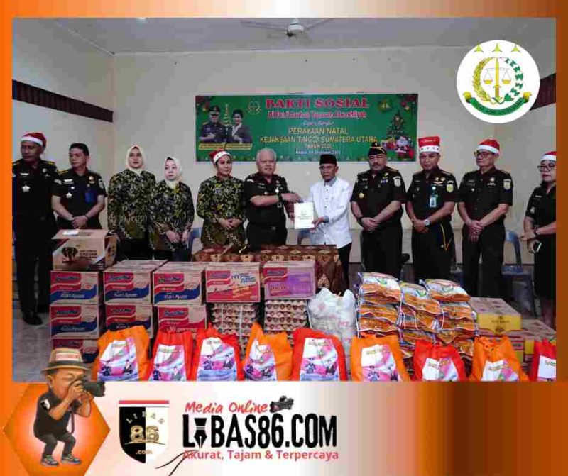 MEDAN, LIBAS86.COM – Menyambut hari natal tahun 2025, Kejaksaan Tinggi Sumatera Utara berbagi kasih dalam kegiatan bertajuk “Bakti Sosial Perayaan Natal Kejaksaan Tinggi Sumatera Utara” yang dilaksanakan secara serentak di tiga lokasi yaitu panti jompo Graha Karya Kasih di Jl. Mongonsidi No.69, Polonia, Kec. Medan Polonia, kemudian Panti Asuhan Yas Alwasliyah di Jl. Karya Jaya No.267, Gedung Johor, Kec. Medan Johor dan yang terakhir Panti Asuhan Talenta Delpita di Jl. Bunga Bangsa/Jl. Unika Ujung LK XX Gg Sepadan I Kelurahan Kwala Bekala Kecamatan Medan Johor.