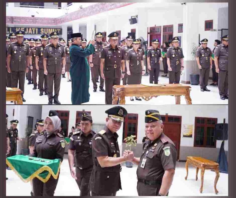 MEDAN, LIBAS86.COM – Kepala Kejaksaan Tinggi Sumatera Utara Dr.Harli Siregar, SH.,M.Hum memimpin pelantikan dan serah terima Wakajati bersama 5 Pejabat Utama (PJU) di Kejaksaan Tinggi (Kejati) Sumatera Utara, Rabu (5/11/2025) di Jl AH Nasution Medan.