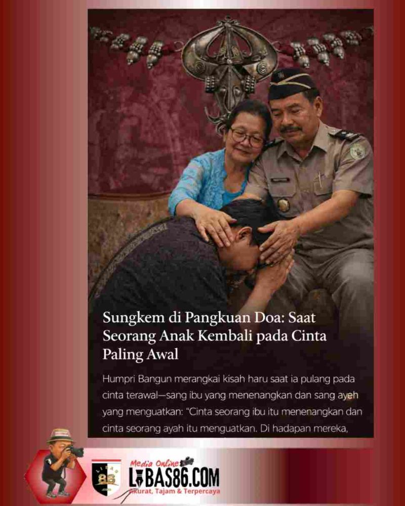 MEDAN, LIBAS86.COM – Di sebuah ruang sederhana yang hangat oleh kenangan, seorang anak berlutut di hadapan kedua orang tuanya. Kepalanya tertunduk, tangannya terkatup, menyentuh kasih yang tak pernah meminta balasan. Momen sungkem itu bukan sekadar tradisi, melainkan bahasa paling jujur dari cinta dan bakti—cinta yang lahir sebelum dunia mengenal namanya.