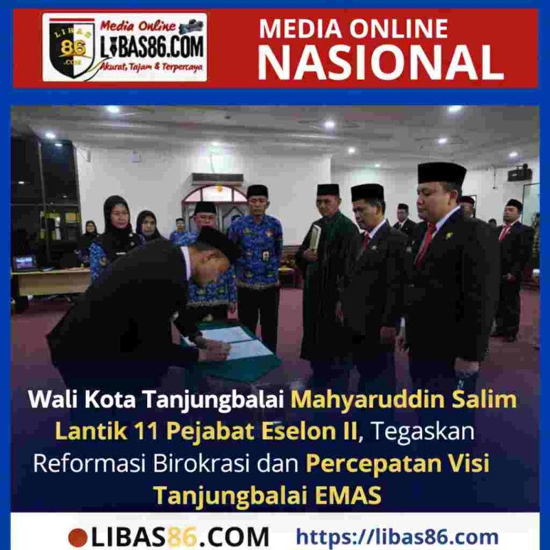 TANJUNGBALAI, LIBAS.COM – Wali Kota Tanjungbalai, Mahyaruddin Salim, resmi melantik 11 pejabat Jabatan Pimpinan Tinggi (JPT) Pratama atau Eselon II di lingkungan Pemerintah Kota (Pemko) Tanjungbalai, Jumat (17/4/2026) sore. Prosesi pelantikan berlangsung di Aula Sutrisno Hadi, Kantor Wali Kota Tanjungbalai, sebagai bagian dari penguatan struktur birokrasi daerah.