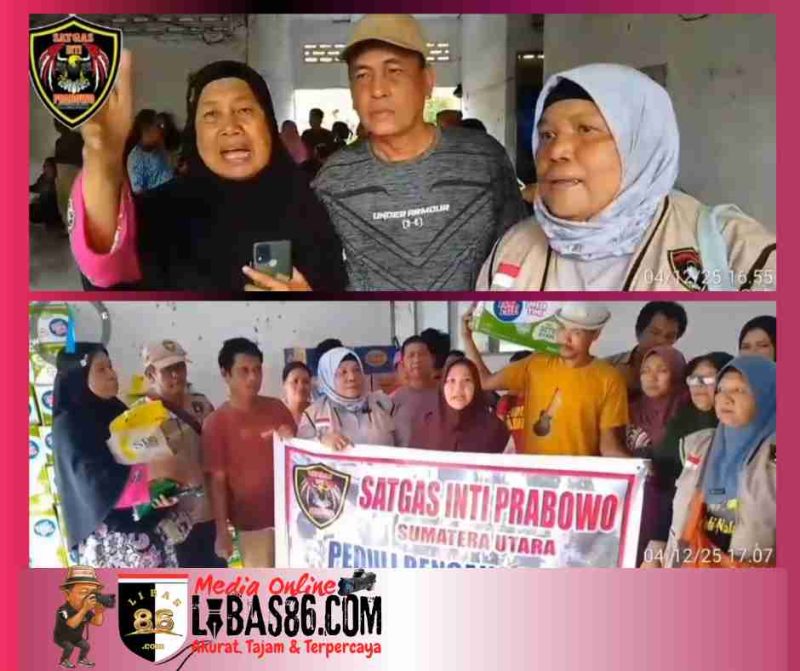LANGKAT, LIBAS86.COM – Satgas Inti Prabowo (SIP) Provinsi Sumatera Utara (Sumut) menyalurkan bantuan kepada para korban banjir di 2 Titik Posko, Kecamatan Tanjung Pura, Kabupaten Langkat, Sumatera Utara, pada Kamis sore.(4/12/25)