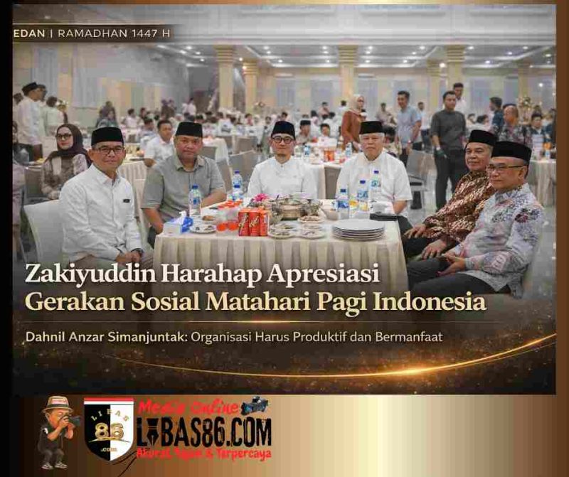 MEDAN, LIBAS86.COM  – Di tengah suasana Ramadhan yang penuh makna, gerakan sosial kembali menunjukkan wajah kemanusiaannya. Organisasi Matahari Pagi Indonesia menggelar buka puasa bersama sekaligus santunan bagi anak yatim piatu dan penyandang disabilitas di Aula Perguruan Islam Al-Amjad, Medan, Minggu (8/3/2026).